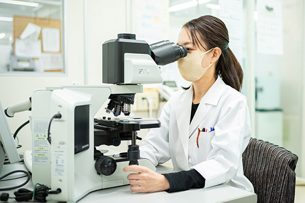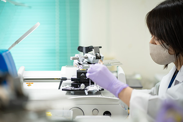 内視鏡検査や手術により採取した組織から標本を作製し、病理医によって病変の診断をしていただく検査です。直接診断に結びつく重要な検査です。