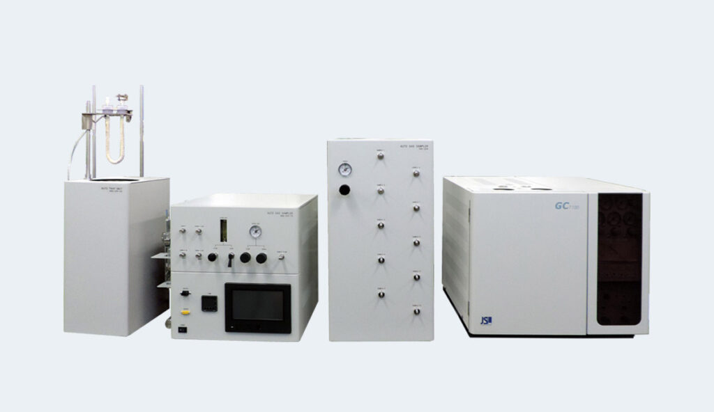 チューケン生活環境研究所の松原博士と(株)ジェイ・サイエンス・ラボが開発した本システムは、コールドトラップ法により焼酎の原酒に含まれる不快臭の原因となるイオウ化合物を濃縮し、ガスクロマトグラフ(FPD)法にて、高感度分析を行います。サンプル(酒類など)をセットした後、N2パージによる追い出し(バブリング)から低温濃縮までの一連の操作を自動で行います。
